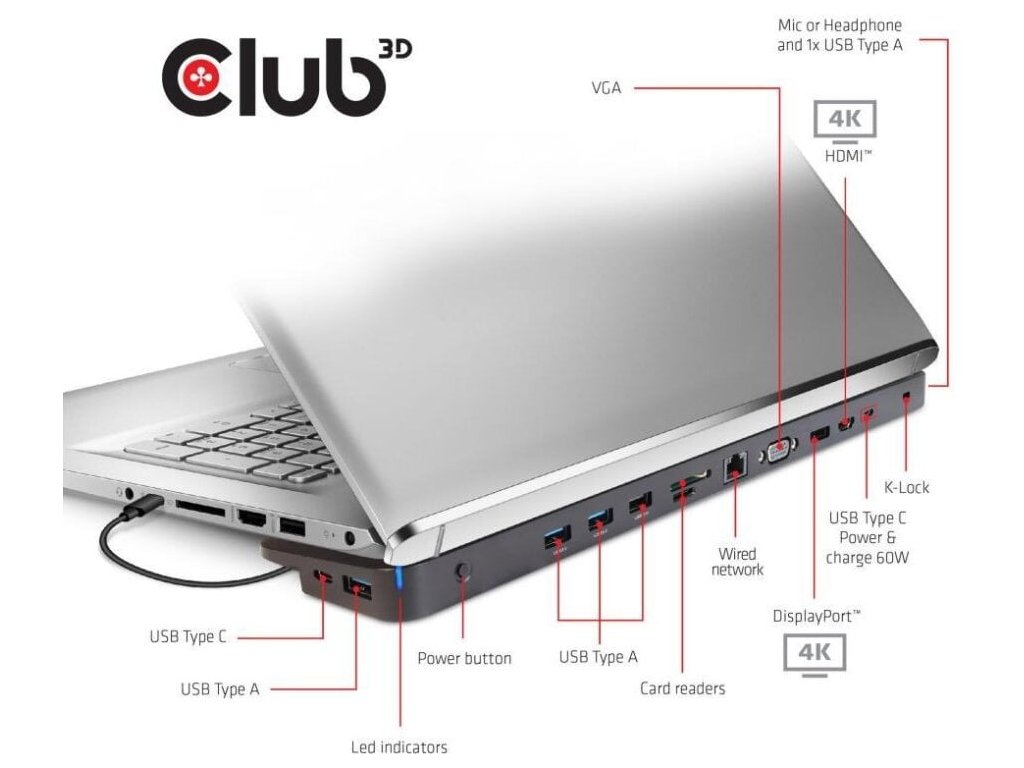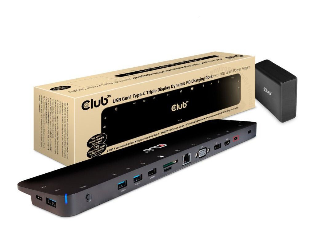 Club3D dokovacia stanica USB-C 3.2 s napájacím adaptérom Triple Dynamic PD, 100 W CSV-1564W100